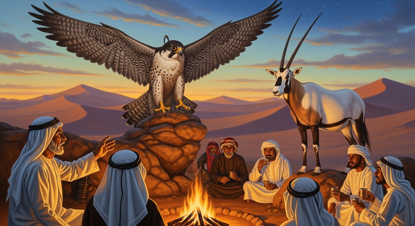 Byinfo@folklore.UAEHistoryAndCulture.comDecember 5, 2025 The Falcon and the Oryx: Animal Symbols in Bedouin Storytelling Culture & Daily Life